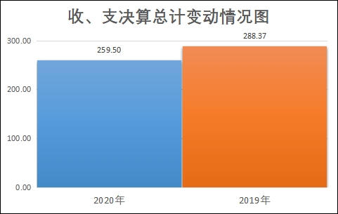 2020年度收、支总计259.50万元。与2019年相比,收、支总计各减少28.87万元,下降10.01%。主要变动原因是2020年业务量减少,事业收入减少,财政拨款调减。