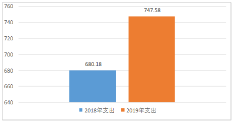 三、 支出决算情况说明 2019年本年支出合计747.58万元,其中:基本支出503.14万元,占67.30%%;项目支出244.44万元,占32.70%;上缴上级支出0万元,占0%;经营支出0万元,占0%;对附属单位补助支出0万元,占0%。