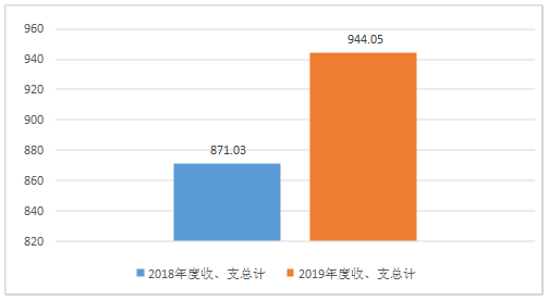 一、 收入支出决算总体情况说明 2019年度收、支总计944.05万元。与2018年相比,收、支总计各增加73.02万元,增长8.38%。主要变动原因是为了迎接义教均衡国检政府加大对教育的投入,大力改善办学条件,新建了塑胶操场。