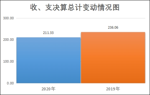 2020年度收、支总计211.33万元。与2019年相比,收、支总计各减少24.73万元,下降10.48%。主要变动原因是2020年业务量减少,事业收入,财政拨款减少。