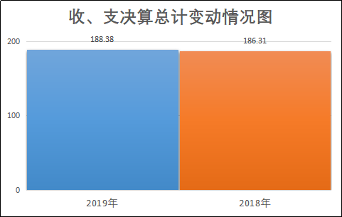 2019年度收、支总计188.38万元。与2018年相比,收、支总计各增加2.07万元,增长1.11%。主要变动原因是2019年财政拨款收入、事业支出较2018年有所增长。