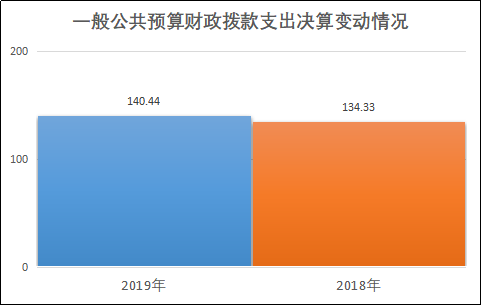 2019年一般公共预算财政拨款支出140.44万元,占本年支出合计的74.55%。与2018年相比,一般公共预算财政拨款增加6.11万元,增长4.55%。主要变动原因是人员经费增加事业支出增加。