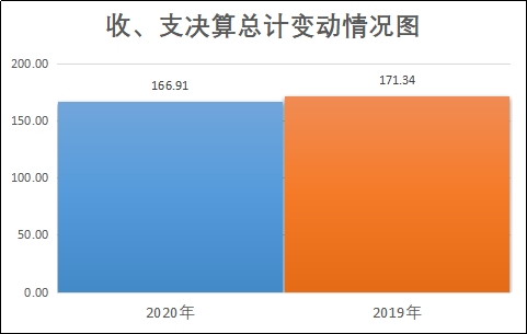 2020年度收、支总计166.91万元。与2019年相比,收、支总计各减少4.43万元,下降2.59%。主要变动原因是2020年事业收入,事业支出减少。