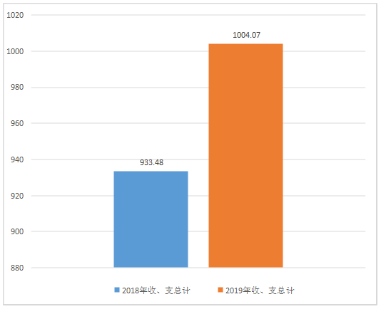第二部分 2019年度部门决算情况说明一、 收入支出决算总体情况说明 2019年度收、支总计1004.07万元。与2018年相比,收、支总计各增长70.59万元,增长7.56%。主要变动原因是义教均衡迎国检,政府加大对教育的投入,学校新建塑胶操场,为学校配备教学仪器设备、音体美器材等。