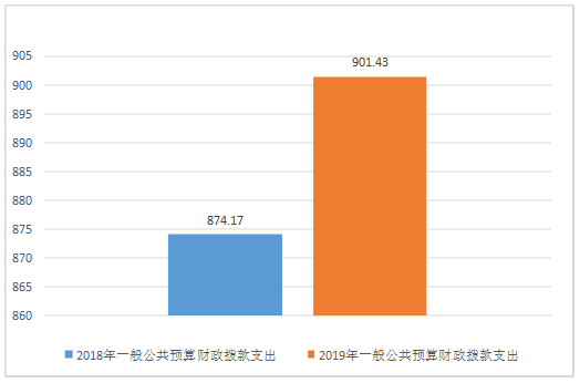 五、一般公共预算财政拨款支出决算情况说明 (一)一般公共预算财政拨款支出决算总体情况 2019年一般公共预算财政拨款支出901.43万元,占本年支出合计的100%。与2018年相比,一般公共预算财政拨款增加27.26万元,增长3.12%。主要变动原因是义教均衡迎国检,学校增加设备设施采购。