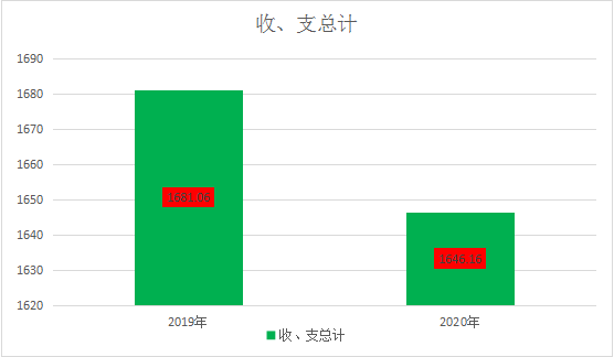 2020年度收、支总计1646.16万元。与2019年相比,收、支总计各减少34.40万元,下降2.08%。主要变动原因是主要变动原因是峨边职教中心二期工程竣工,工程拨款支
